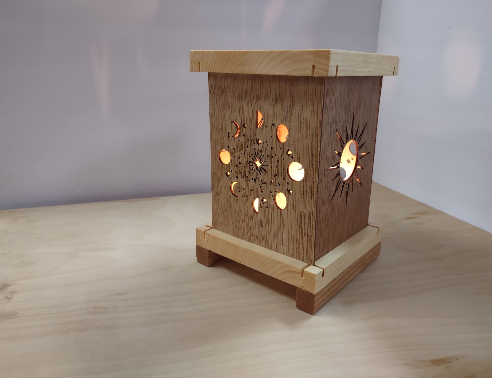 In this class you will build an artistic box lantern. You will create interchangeable panels that will be assembled into a box shape. One day will include making the box lantern and the second class will be lessons on using AutoCad to make vectors that will be used with a laser cutter to cut shapes out of wood. With these skills you will be able to design silhouettes on additional panels for your box lantern.